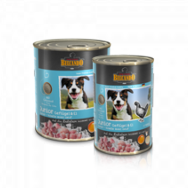 Belcando Junior poultry & eggs je masová konzerva určená pro štěňata všech plemen. Specifické vlastnosti: Hypoalergenní - citlivé zažívání, Hypersensitivní – bezobilná krmiva, Stáří psa: Štěně, Velikost plemene: Trpasličí do 5 kg, Velké a obří nad 25 kg, Malé 5-10 kg
