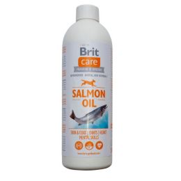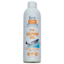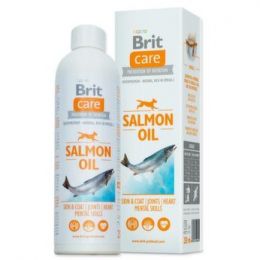 Brit Care Salmon Oil je přírodním doplňkem stravy pro psy v prvotřídní kvalitě. Za studena lisovaný olej z norských lososů napomáhá vybalancovat poměr Omega-3 a Omega-6 mastných kyselin. Superprémiový lososový olej řeší některé zdravotní problémy. Při pravidelném užívání lososového oleje Brit Care bude srst viditelné hustší a lesklejší. Nehrozí změna pigmentace. Lososový olej nepřebarvuje srst. Naopak podporuje její přirozené zbarvení. Pozitivní vliv přípravku se projevuje i na psychice zvířete - odbourává stres a zmírňuje deprese. EPA kyselina má přirozené protizánětlivé účinky a DHA kyselina se podílí na výstavbě mozkových struktur a sítnice oka u nenarozených štěňat.