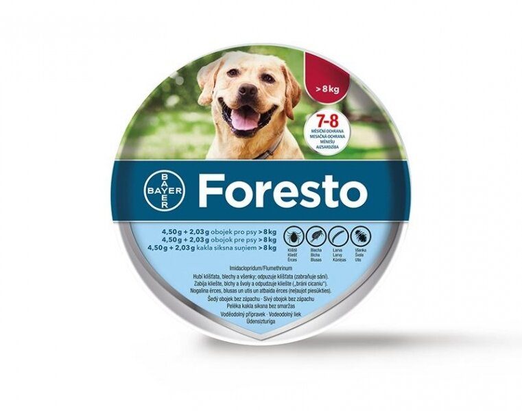 léčba a prevence zablešení (Ctenocephalides felis) po dobu 7 až 8 měsíců. Účinnost proti blechám nastupuje okamžitě po nasazení obojku. Zabraňuje vývoji bleších larev v nejbližším okolí zvířete po dobu 8 měsíců. Foresto může být použit jako součást léčby alergické dermatitidy vyvolané blechami (FAD). Přípravek má stálý akaricidní (smrtící) účinek proti klíšťatům (Ixodes ricinus, Rhipicephalus sanguineus, Dermacentor reticulatus) a repelentní (zabraňující sání) účinek (Ixodes ricinus, Rhipicephalus sanguineus) po dobu 8 měsíců. Působí proti larvám, nymfám i dospělým klíšťatům.