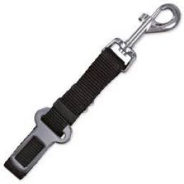 Nastavitelná bezpečnostní spojka k autopásu s kovovou karabinou na připnutí k postroji psa.