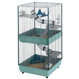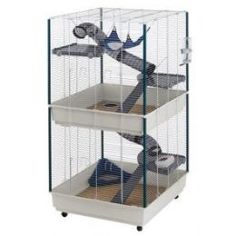Vnitřní vybavení klece je vyrobeno z plastu. Z tohoto důvodu je vnitřní vybavení snadno čistitelné. příp. je bez problémů použitelná desinfekce. Vnitřní vybavení klece zahrnuje: 2x krmítko, 1x napájku, 3x opočivadlo, 1x závěsné lůžko, 2x průchozí tubus, 2x nástupní příčky (žebřík), 1x záchod rohový. Klec lze průběžně přemistít, dno je opatřeno kolečky z plastu.