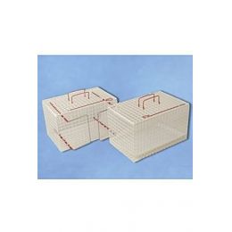 Klec je vyrobena z bílých poplastovaných drátů. Má dvojitou posuvnou stěnu, která umožňuje bezpečné sevření.