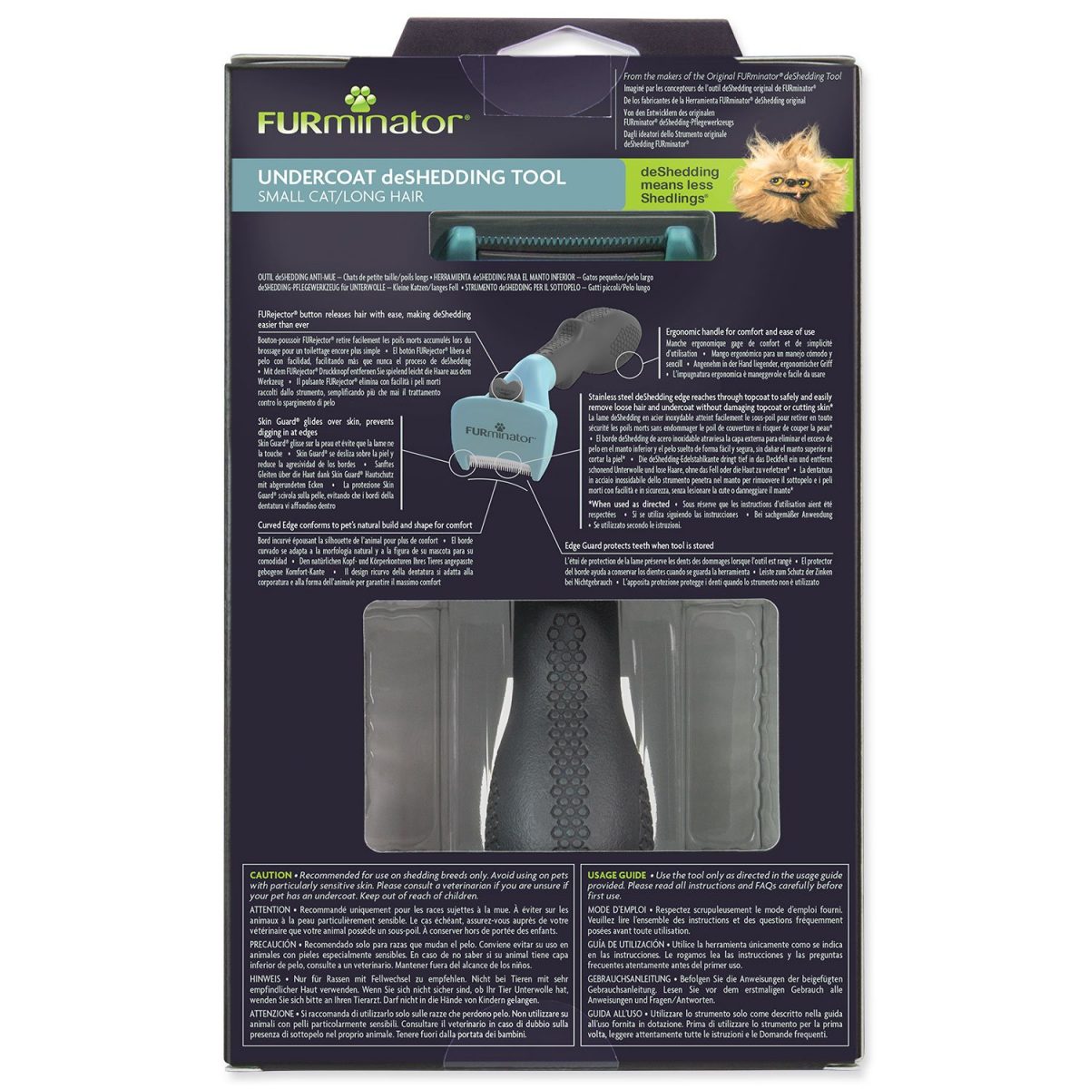 Pomáhá také redukovat tvorbu chlupových bezoárů. Používejte na suchou srst jednou či dvakrát týdně po dobu 10 až 20 minut. Vyčesávací hrana z nerezové oceli proniká hluboko do srsti zvířete, kde šetrně a lehce odstraňuje uvolněné chlupy z podsady, aniž by poranila kůži nebo poškodila srst.