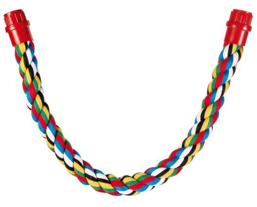Pestrá bavlněná houpačka do klece. Velmi flexibilní, lze připevnit v jakékoli poloze. Přírodní materiál - bavlna a plast.