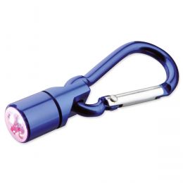 Barevné blikací svítítko, je navrženo s praktickou karabinou pro snadné připevnění.