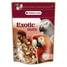 Doplňkové krmivo pro velké papoušky. Versele-Laga Exotické Nuts je pochoutka, která papoušci prostě milují. Vyžadují dostatek různých druhů celých ořechů, ale stejně si vychutnají i bohatou směs zrnin a semen.