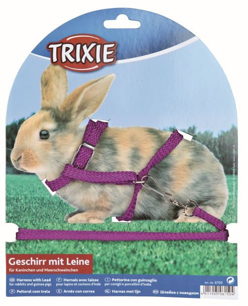Nastavitelný nylonový postroj s vodítkem pro králíky.