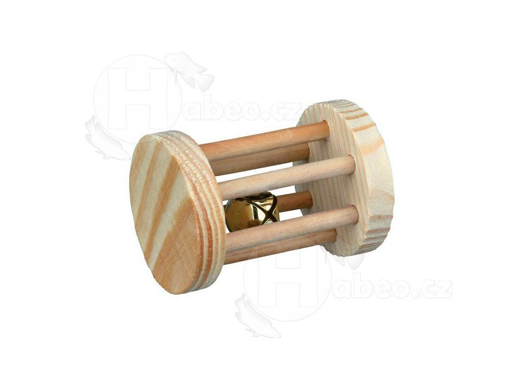 Dřevěný váleček s rolničkou hračka pro morče, králíka 5 x 7 cm