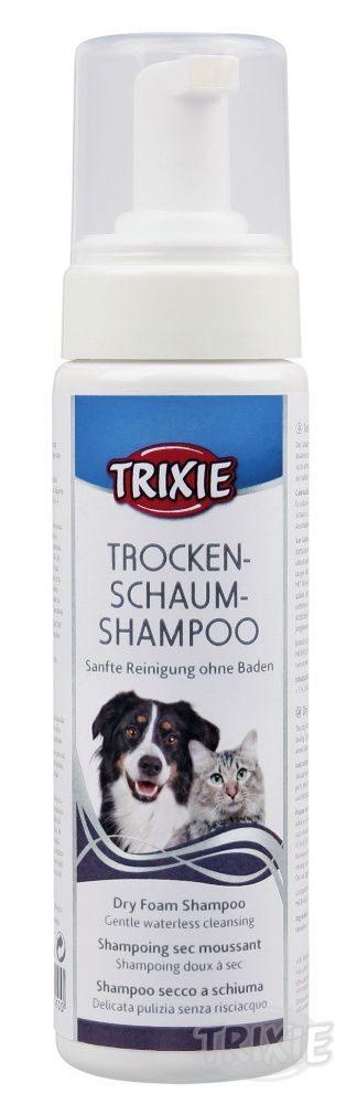 Pěnu větřete do srsti a nechte 3 až 5 minut působit. Zbytky pěny odstraňte osuškou a nebo vykartáčováním. Tento suchý pěnový šampon je určen především pro zvířata, která se nerada koupou a nebo pro péči o srst v zimním období, aby po koupání vodou nedošlo k nachlazení zvířete. Při aplikaci pěnového šamponu je třeba dávat pozor, aby se pěna nedostala zvířeti do očí.