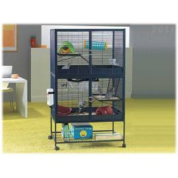 Klec lze používat jako dvě samostatné klece nad sebou, nebo jako jednu velkou. Dvířka umožńují snadný přístup do klece pro čištění a krmení. Kolečka umožňují snadné přemisťování.
