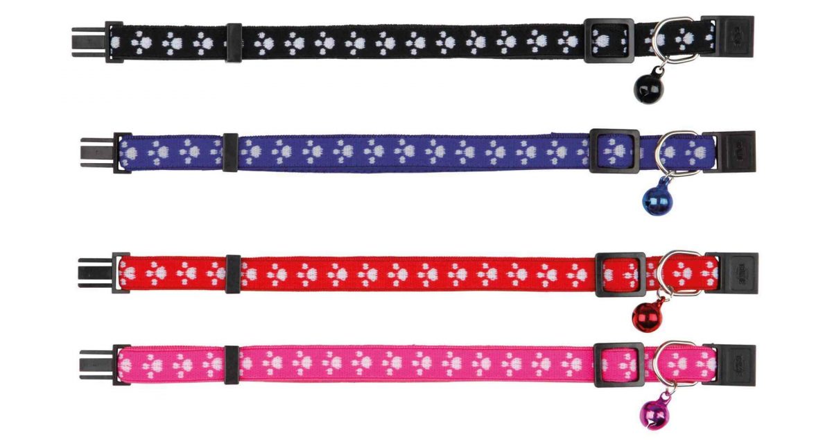 Nastavitelný nylonový pružný obojek s rolničkou.