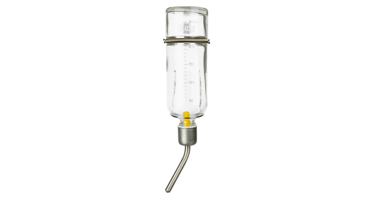 Skleněná napáječka s kovovým pítkem pro činčily a králíky 500 ml 500ml
