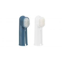 Dva druhy zubních kartáčků navlékajících se na prst v jednom balení. Zubní kartáček navlékající se na prst umožňuje perfektní kontakt kartáčku a zubů vašeho psa.