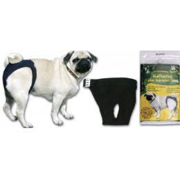 Materiál kalhotek je zvolený pro časté ruční praní. Kalhotky nesmí fenu obtěžovat, proto je obvodový lem pružný, zapíná se na kovovou sponu. Jen správná velikost kalhotek zajistí jejich funkčnost, proto dodáváme na trh 7 velikostí s orientačním návodem k výběru správné velikosti.
