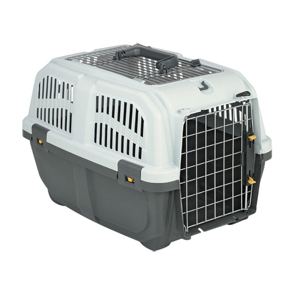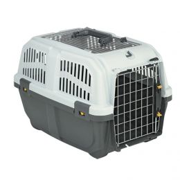 Přepravka má kovová dvířka s bezpečnostním zavíráním, v horní části mřížku, umožňující uklidňující kontakt se zvířetem, praktické úchyty na pás k nošení přes rameno, masivní pohodlnou rukojeť.