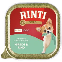 RINTI Gold Mini krmivo pro psy je speciálně pro dospělé psy malých plemen. Zvlášť chutné v praktických 100 g miskách přesvědčí každého malého labužníka. RINTI Gold Mini se vyznačuje výborným složením a velmi vysokou akceptací. Zpracovány jsou jen nejlepší suroviny, není použito žádné formované maso a krmivo je bez barviv a sóji. Vysoký podíl masa a vnitřností 65%, tak jako mnoho vitaminů, minerálních látek a stopových prvků se postarají o vyváženou a přirozenou stravu.
