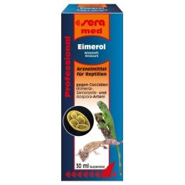 Dávkování: V případě infekce kokcidií podávejte jednorázově ústně 0,05 ml (= 50 µl) Eimerol na každých 10 g tělesné váhy. Léčba musí být po týdnu zopakována. Správnou dávku léčiva aplikujte do dutiny ústní pomocí přiložené injekční stříkačky. U hadů lze léčebnou dávku aplikovat skrze krmná zvířata: potřebnou dávku vetřete do srsti krmného zvířete (hlodavce) bezprostředně před krmením. Balení vystačí pro 3kg jedince (včetně opakování).
