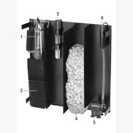 - 4-komorový vnitřní filtr s odpěňovačem PS 200, molitanem, 2 litry výkonného filtračního média sera siporax Professional, sera topítko 100 W, UV-C-lampa 5 W s přeřadičem a sera tlakové čerpadlo STP 1000