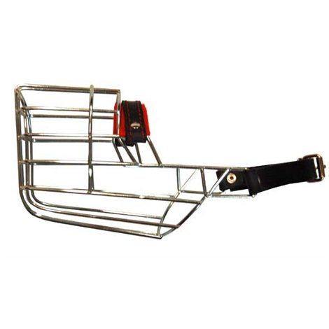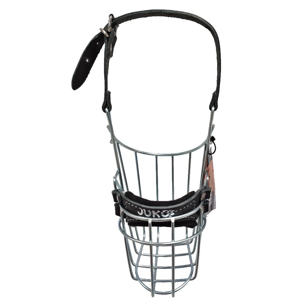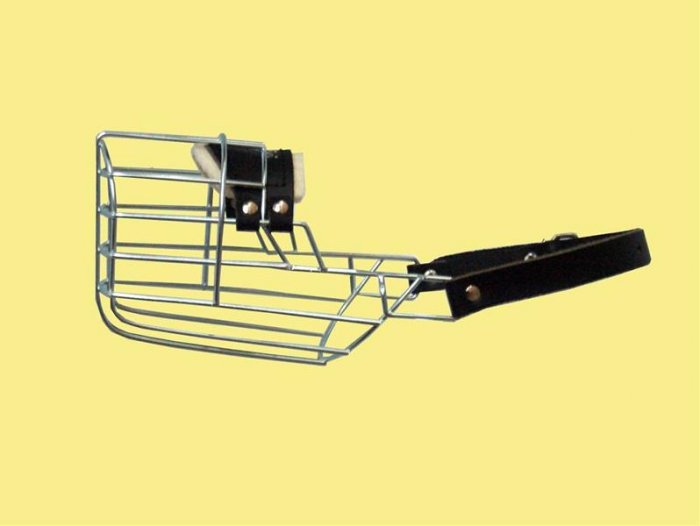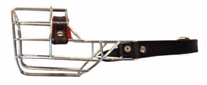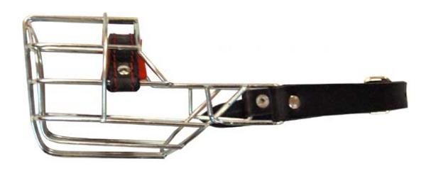 Kovový náhubek pro malá plemena, košík je vyrobený ze zinkového ocelového drátu, s koženým zapínáním. šířka: 8 cm