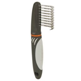 Prořezávací hřeben se zahnutými zuby, zoubkovaným ostřím a protiskluzovou rukojetí. Vhodné pro péči o psy a kočky s dlouhou a vlnitou srstí.