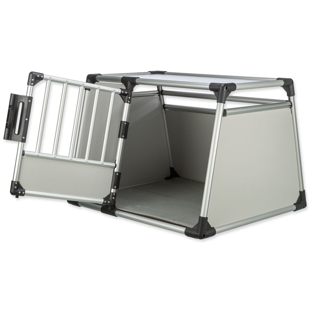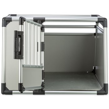 Klec je na obou stranách zkosená, vybavená termopodložkou, přední dveře svou velikostí zajišťují pohodlný vstup a mají pevné uzavírání. Pro optimální cirkulaci vzduchu je přepravka opatřena mřížemi s dostatečným rozestupem. Pes má uvnitř dostatek místa, vzduchu i světla. Klec je lehce složitelná a zajišťuji psovi komfortní a bezpečné cestování.