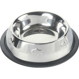 Nerezová miska pro kočky s protiskluzovou úpravou, která zabraňuje posouvání misky po podlaze. Miska je zdobená vyráženým motivem rybky z venkovní strany. Miska je vhodná jak na vodu, tak na krmivo pro kočičky.