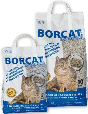 Borcat je hrudkující stelivo minerálního původu s vynikající absorpční schopností Další vlastnosti: Hrudkující