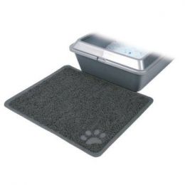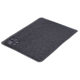 Praktická předložka před kočičí WC z PVC, protiskluzová. Očistí tlapky kočky od podestýlky, okolí toalety tak zůstává čisté. Barva: šedá, Materiál: Umělé vlákno, Tvar: Hranatý