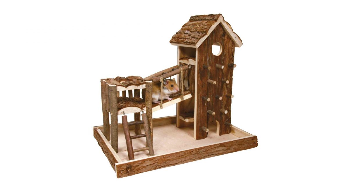 Dřevěný domeček hřiště Birger. - Dřevěná multifunkční prolézačka vhodná pro malé hlodavce jako jsou křečci a myši.