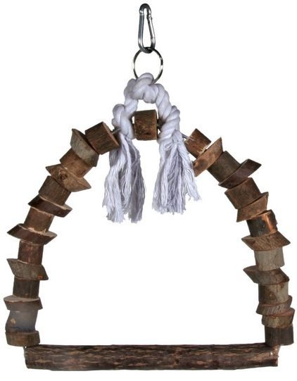 Dřevěná houpačka pro papoušky. Houpačky jako tato rozvíjí kombinační a motorické vlastnosti papoušků a hlavně zaženou nudu v kleci. Produkt je vyroben z přírodního dřeva.