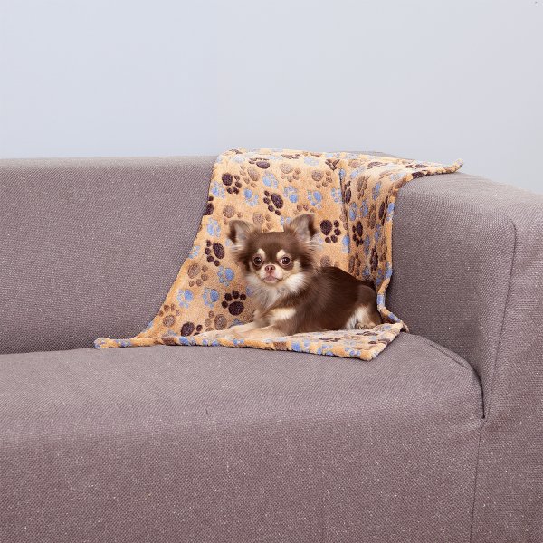 Flísová deka LASLO s tlapičkami, béžová 75 x 50cm