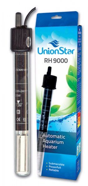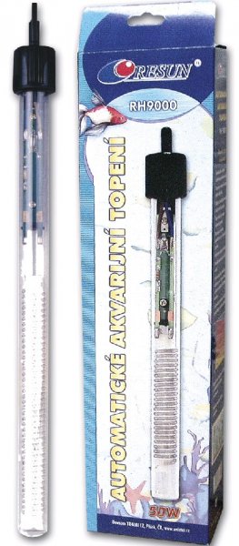 Zapnutí topení termostatem je indikováno svitem kontrolky uvnitř skleněného tělesa topení. Keramická topná tělesa. Vybaveno dvěmi silnými přísavkami. Silnostěnná zkumavka. Topítka RH-9000 mají tu zvláštnost, že stupnice zadávané teploty je umístěna svisle uvnitř průhledného pouzdra topítka. Konstrukce ohřívače je uzpůsobena provozu pod hladinou až do hloubky 1 m – absolutně uzavřené celoponorné a plně automatické topítko – topítko lze nainstalovat v jakémkoliv úhlu – snadno nastavitelný termostat Technická data: RH-9000 25 W, vel. akvária: 20 - 40 l RH-9000 50 W, vel. akvária: 40 - 60 l RH-9000 75 W, vel. akvária: 60 - 90 l RH-9000 100 W, vel. akvária: 90 - 150 l RH-9000 150 W, vel. akvária: 150 - 300 l RH-9000 200 W, vel. akvária: 300 - 450 l RH-9000 250 W, vel. akvária: 450 - 600 l RH-9000 300 W, vel. akvária: 600 - 800 l