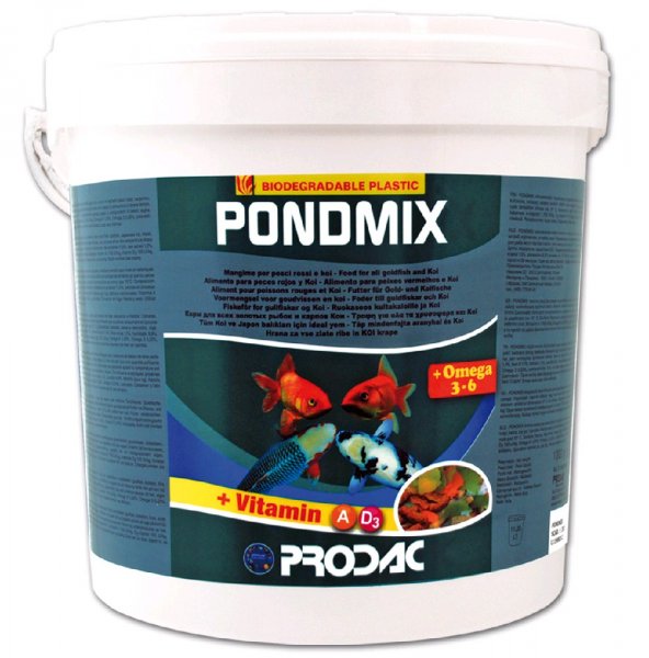 Krmivo je kombinované z vločkovaného krmiva a plovoucích pelet tak, aby uspokojilo potřeby různých druhů ryb v jezírku. Složení. obiloviny, kukuřičná mouka, pšeničná mouka, rybí moučka, moučka z mořských řas, vitamíny A, D3, E, C, barviva povolená v EU.