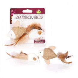 Odolné hračky pro kočky z přírodních materiálů, ve tvaru rybky a myšky. Bezpečná, bez ostrých hran.