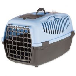 Přepravka s rukojetí a předními dvířky určená pro psy, kočky a malá zvířata max. do váhy 12kg Barva: modrá, šedá, modrá, šedá, Materiál: Plast, guma, Plast