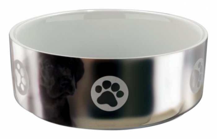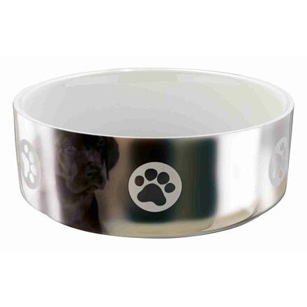 Keramická miska pro psy s packami 0,8 l/15 cm stříbrno/bílá