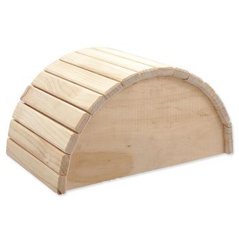 Dřevěný půlkruhový domek pro hlodavce.