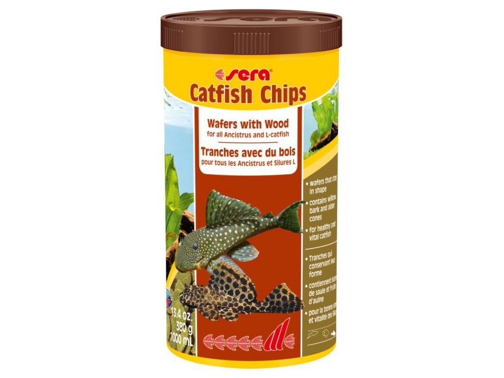 Sera Wels Chips zůstává v akváriu dlouho kompaktní. Obsahuje mj. vrbovou kůru, olšové dřevo a spirulinu.