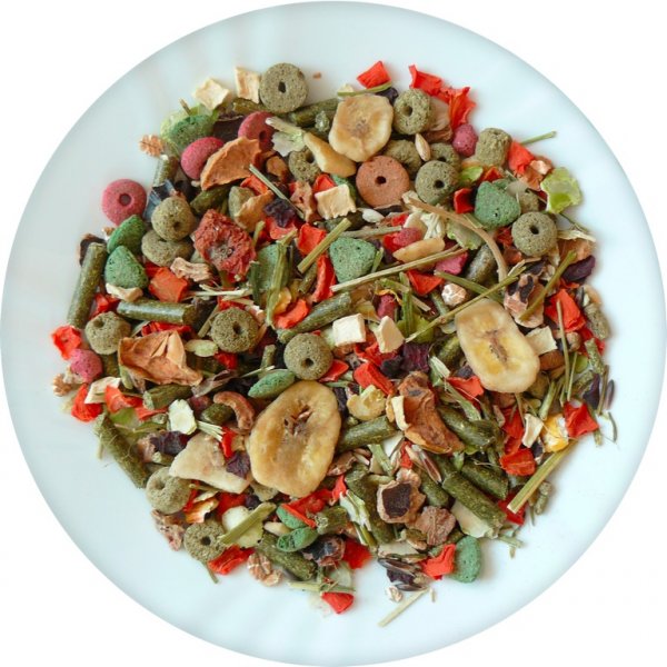 Výběrová krmná směs se spoustou sušené zeleniny a kvalitní vojtěšky. Vlastnosti: Premium a deluxe směsi