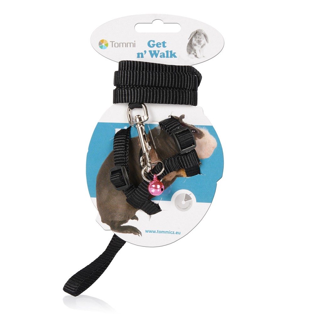 Nylonový postroj ve velikosti pro morčata s plastovými sponami na zapínání a rolničkou. Vodítko: 120 cm