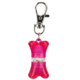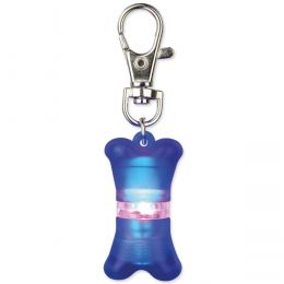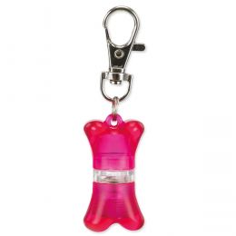 Přívěsek pro psy na obojek nebo postroj, uvnitř slouží jako adresář. Blikající světlo červené a modré vydrží cca 20 hodin svícení. Včetně baterií.