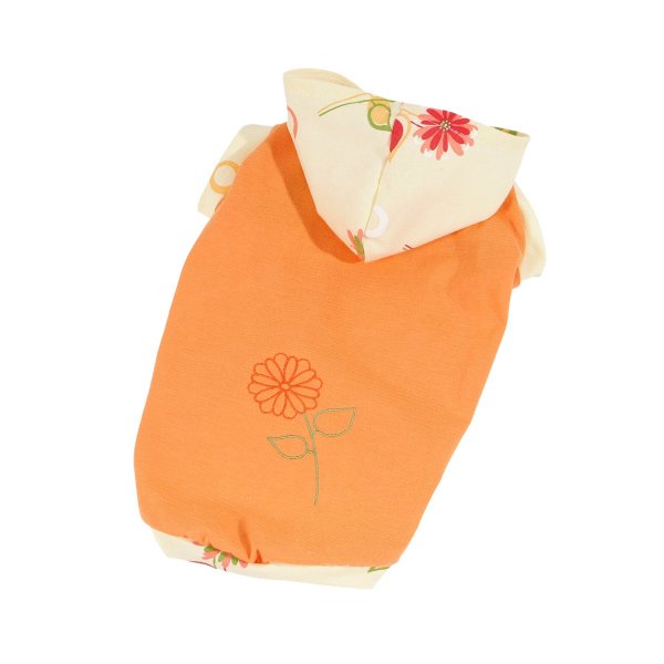 Na zádičkách je vyšitá kytička, kapucka je vyrobena z látky s potiskem kytek.