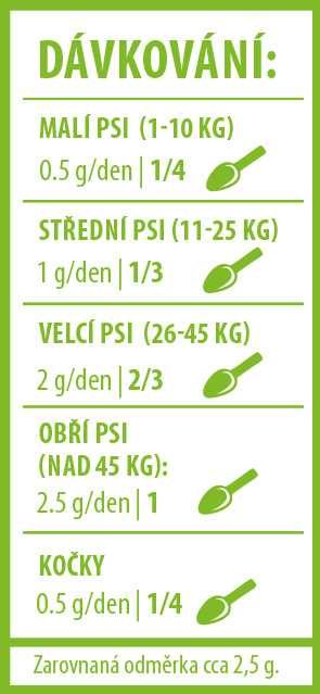 Krmný návod: Kelpa se podává zamíchaná do krmiva dle doporučeného dávkování. Pro optimální efekt doporučujeme podávat dlouhodobě. Upozorňujeme, že při použití u výstavních jedinců s bíle zbarvenou srsti může dojit k nežádoucímu zabarvení.