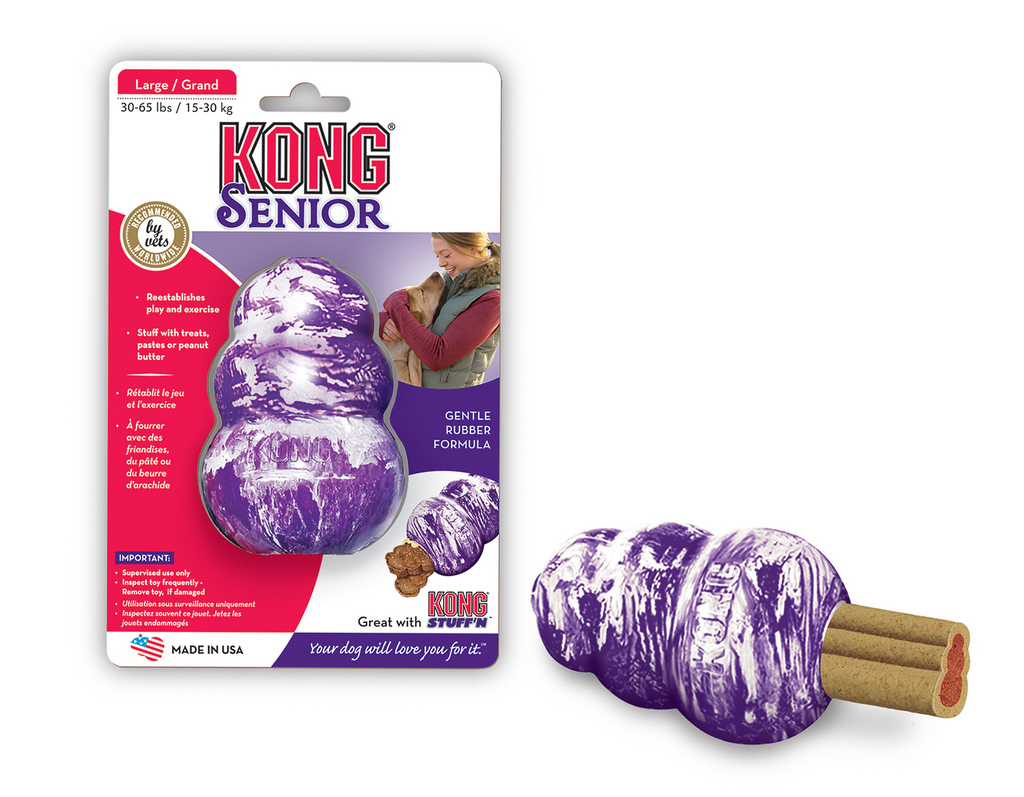 Hračka guma senior Kong je plnitelná hračka pro starší psy ze speciální jemné, ale odolné gumy. Materiál: Gumové, TPR