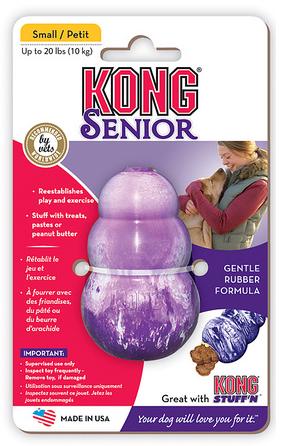 Hračka guma senior Kong je plnitelná hračka pro starší psy ze speciální jemné, ale odolné gumy. Materiál: Gumové, TPR