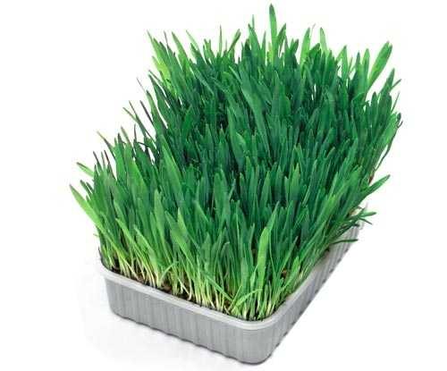 Odstraňte horní víko, zalijte vodou tak, aby výživná půda na dně misky byla vlhká (nezalévejte semínka mnoho, aby se neudusila) a do naklíčení nechte misku přikrytou víkem. Tráva je připravena k použití až dosáhne 4 cm.