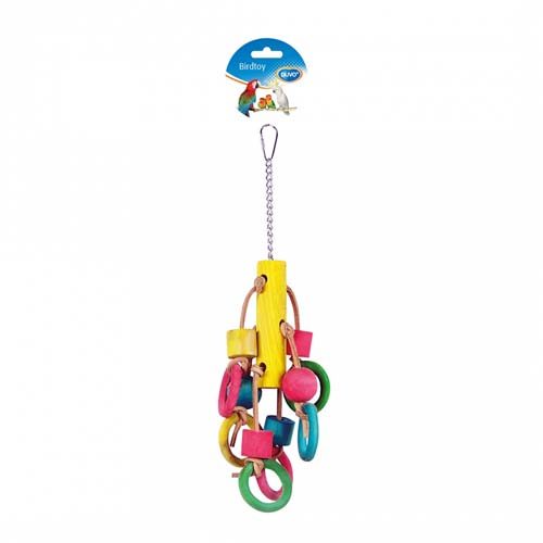 Hračka pták dřevo/kůže - kostky a kruhy Duvo+ 33 cm