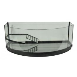 Želvárium s přední obloukovou stěnou a spodním rámem.