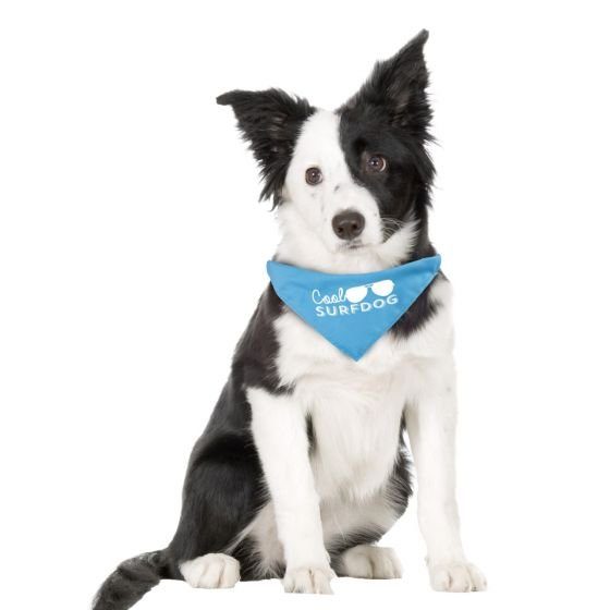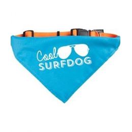 Praktický šátek pro psa z bavlněného materiálu v modro-oranžové barvě ve velikosti 22/35cm 10mm. Zapínání vzadu na krku.