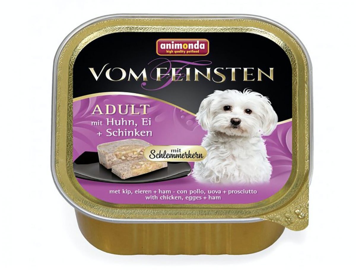 - vysoce kvalitní paštika pro dospělé psy (1–6 let) s kuřecím masem, vejcem a šunkou